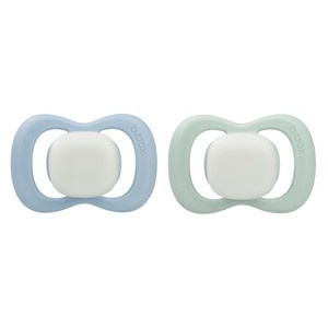 b.box Smoczek dla niemowlaka 2 szt.– symetryczny smoczek silikonowy 6 mies.+ Glow in the dark Sky + Sage