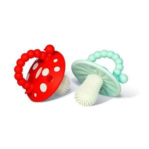 Gryzak logopedyczny Grzybek dla niemowląt na ząbkowanie RaZbaby 2 szt. czerwony i niebieski