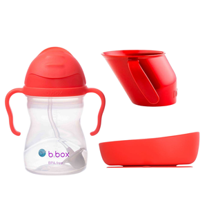Zestaw do nauki picia b.box malinowy i kubek Doidy Cup czerwony